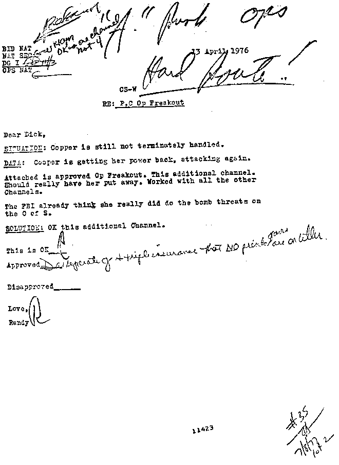 Document Three. Cult operative is to dress like Ms. Cooper and